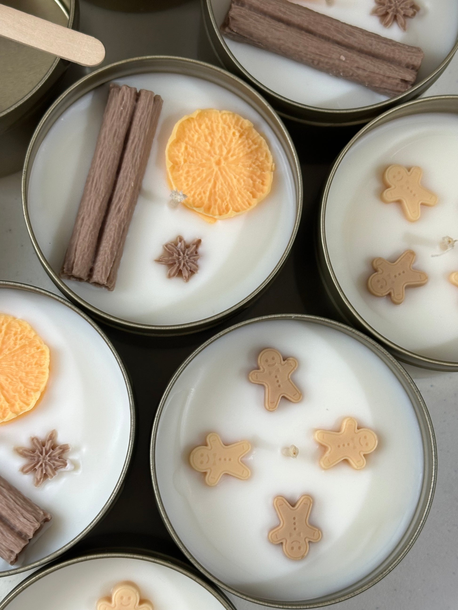The long awaited Christmas exclusive candles have arrived! Featuring decorations made completely from soy wax that will melt into your candle so there’s no hazards!