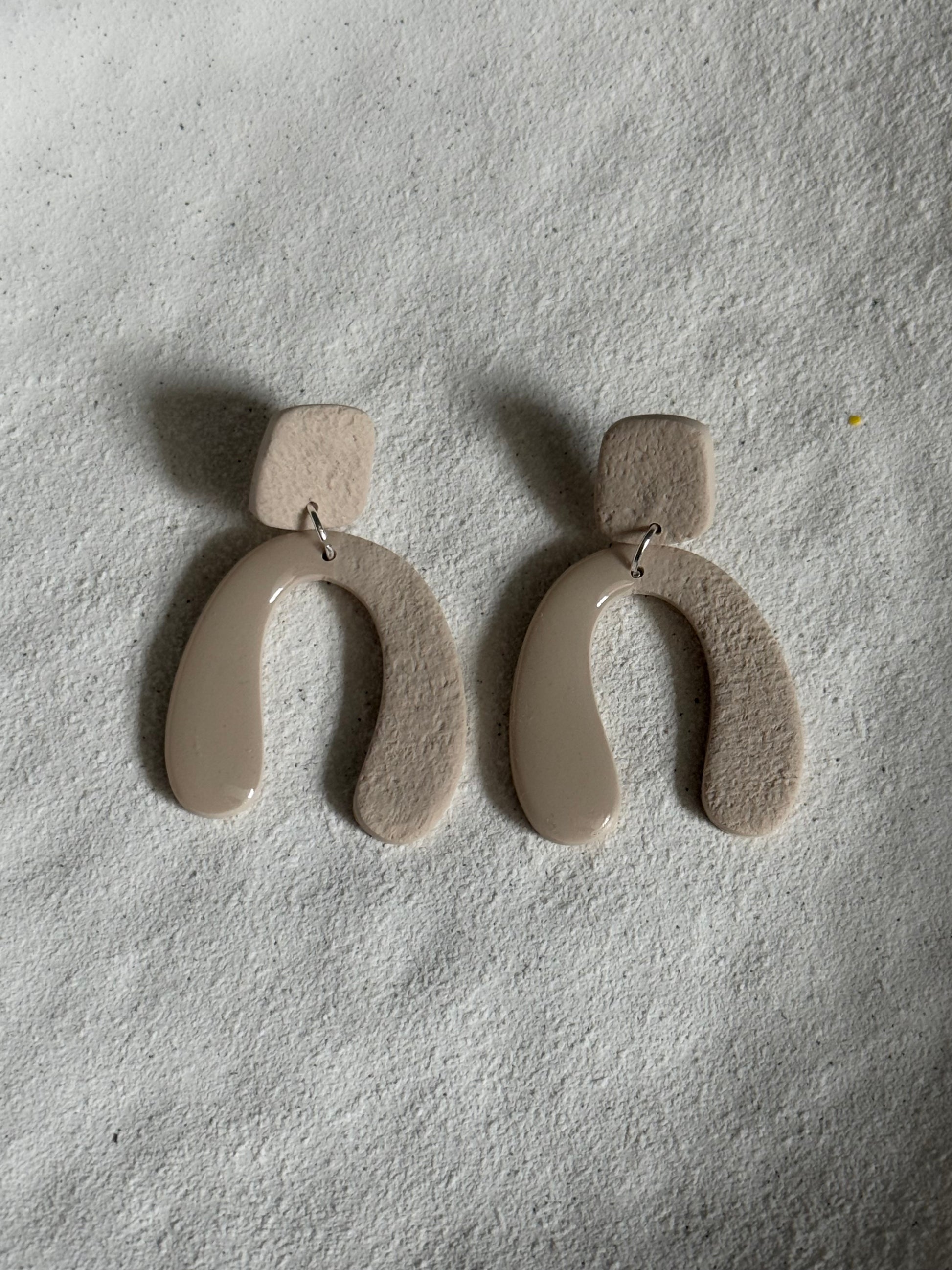 ROAN earrings are expertly crafted with an organic arch shape and unique split design of textured and glossy elements. These statement earrings are made with organic materials, providing a stylish and sustainable option for any outfit. Elevate your look with ROAN.